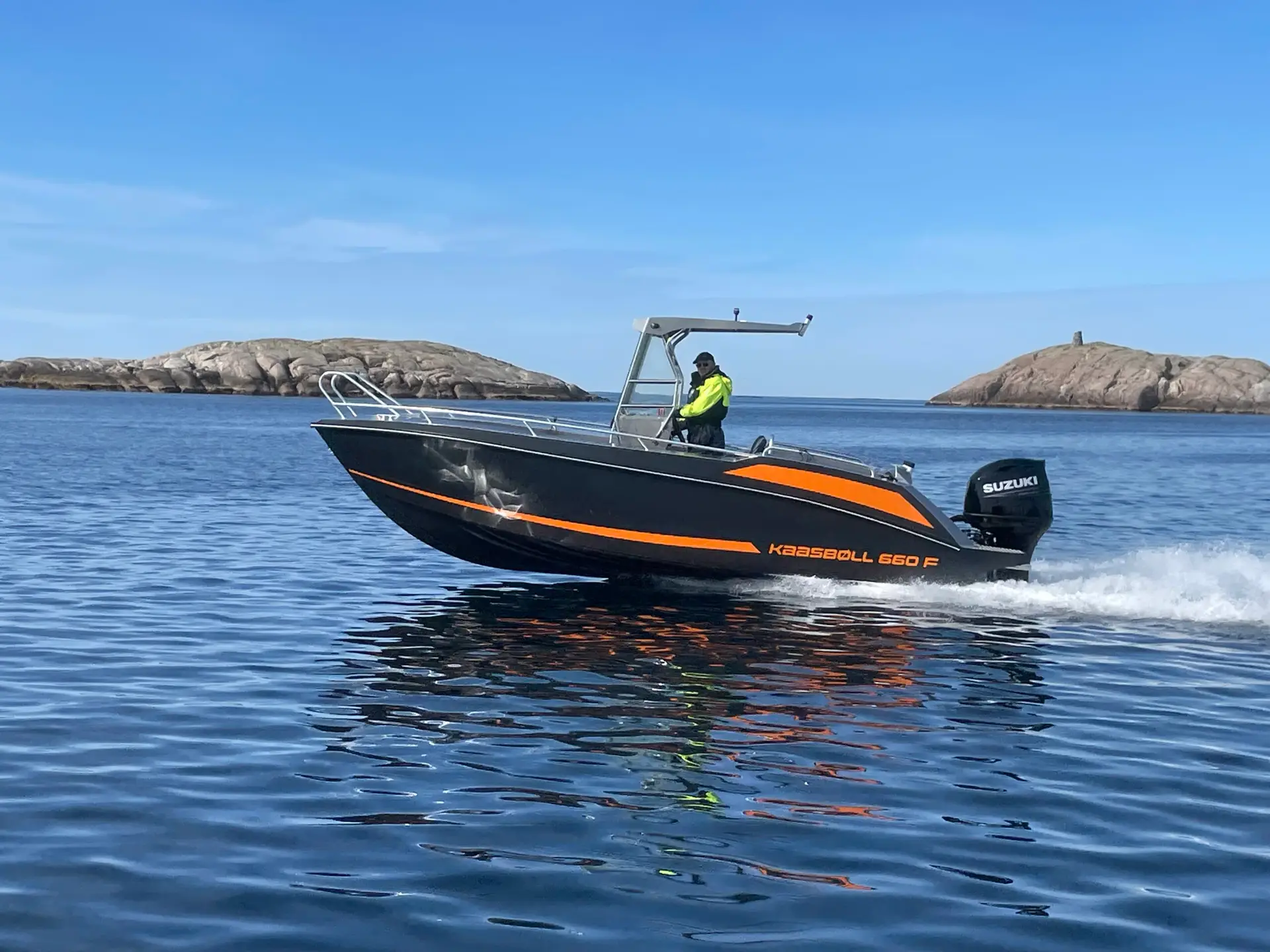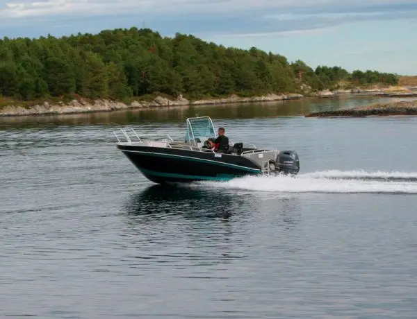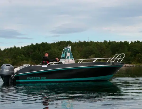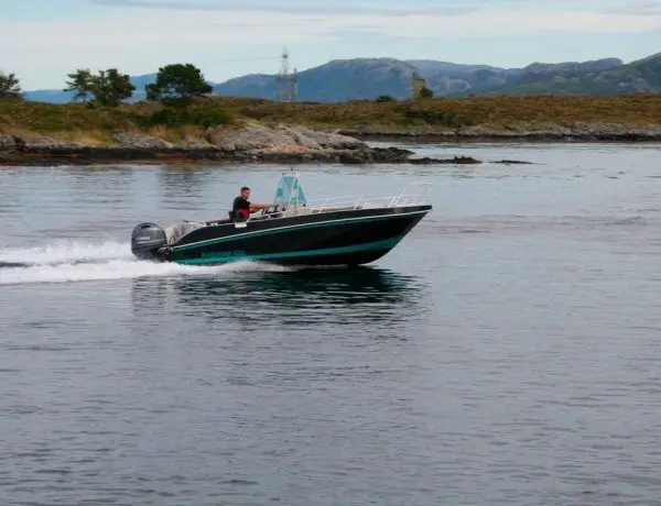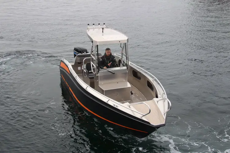 En bred og ekstra stødig fiskebåt på 23 fot. Ekstra deksplass og spesialtilpasset for fisking.