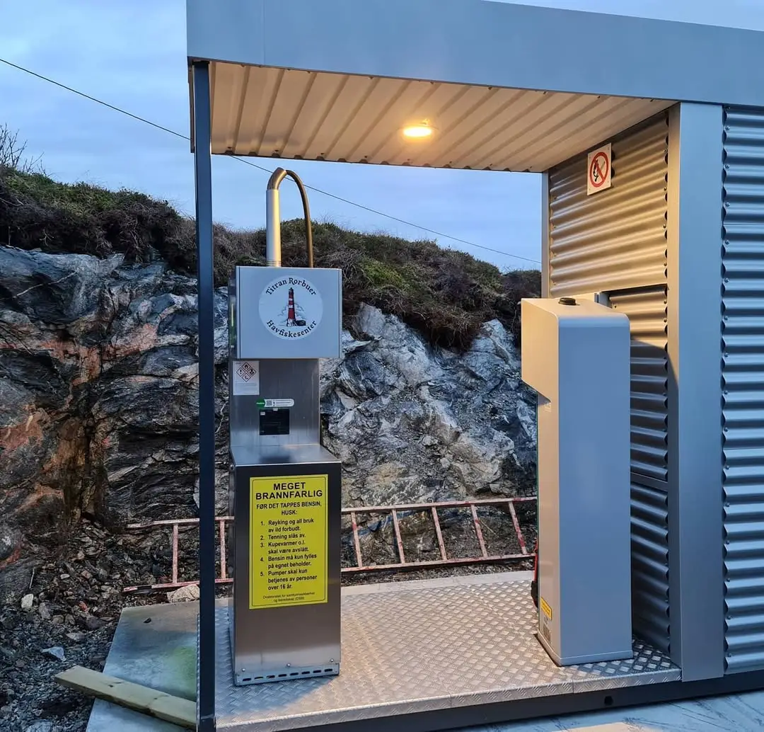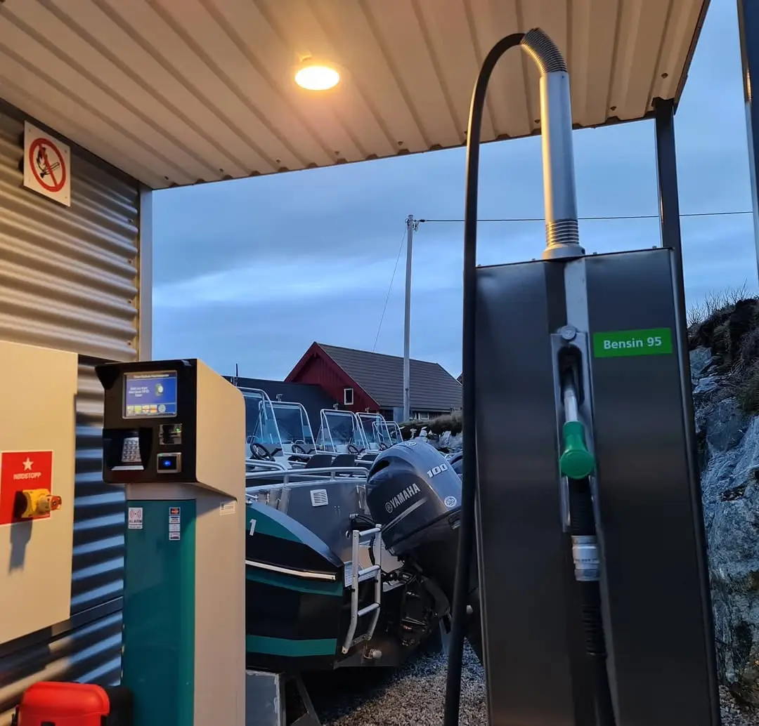 Hos oss kan man fylle bensin fra vårt private tankanlegg 50 meter fra marina med ditt eget kort 24/7.