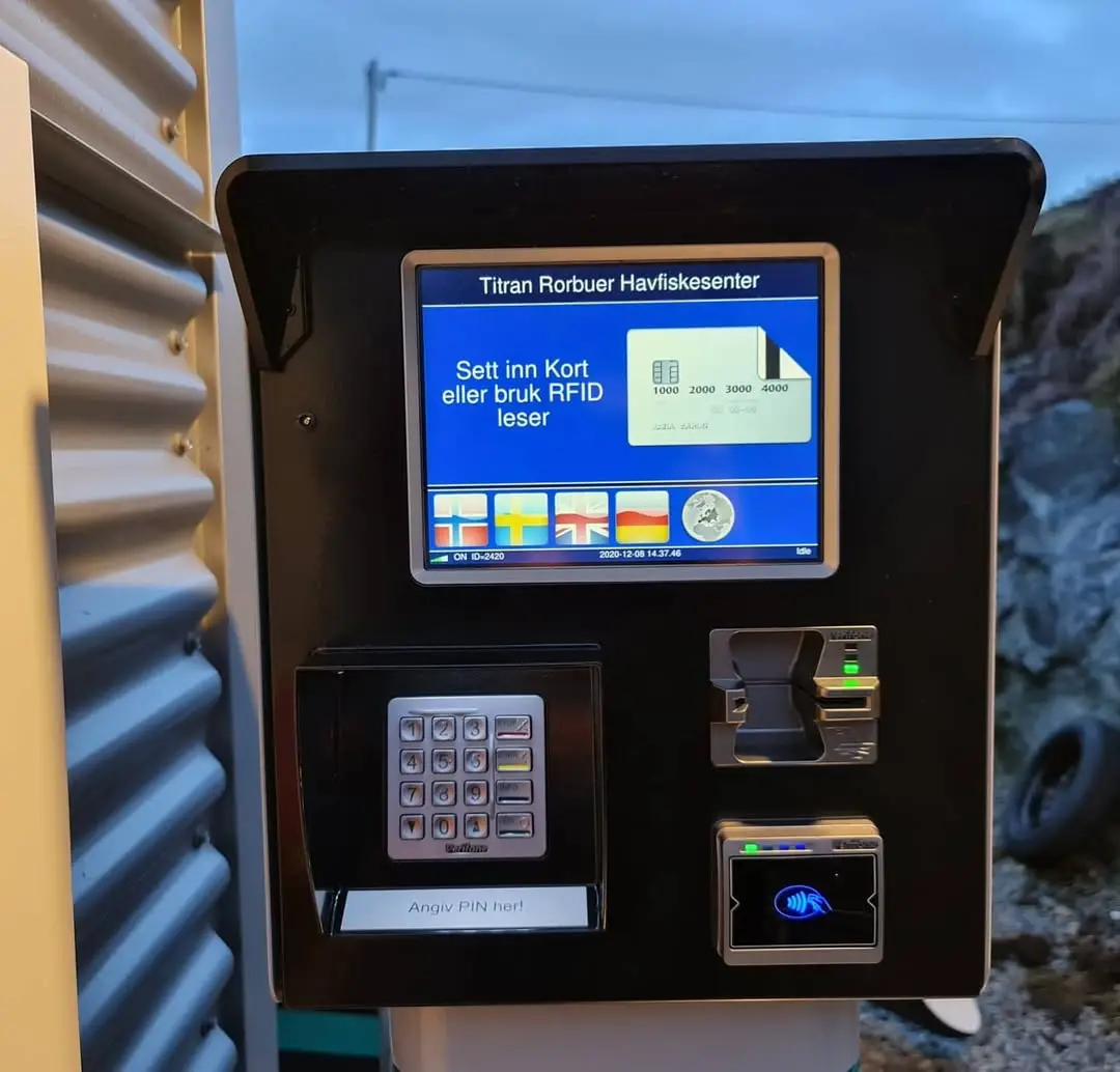 Pumpe leverer 40l/min og betaling gjøres som på vanlig bensinstasjon med eget debet eller kredittkort.