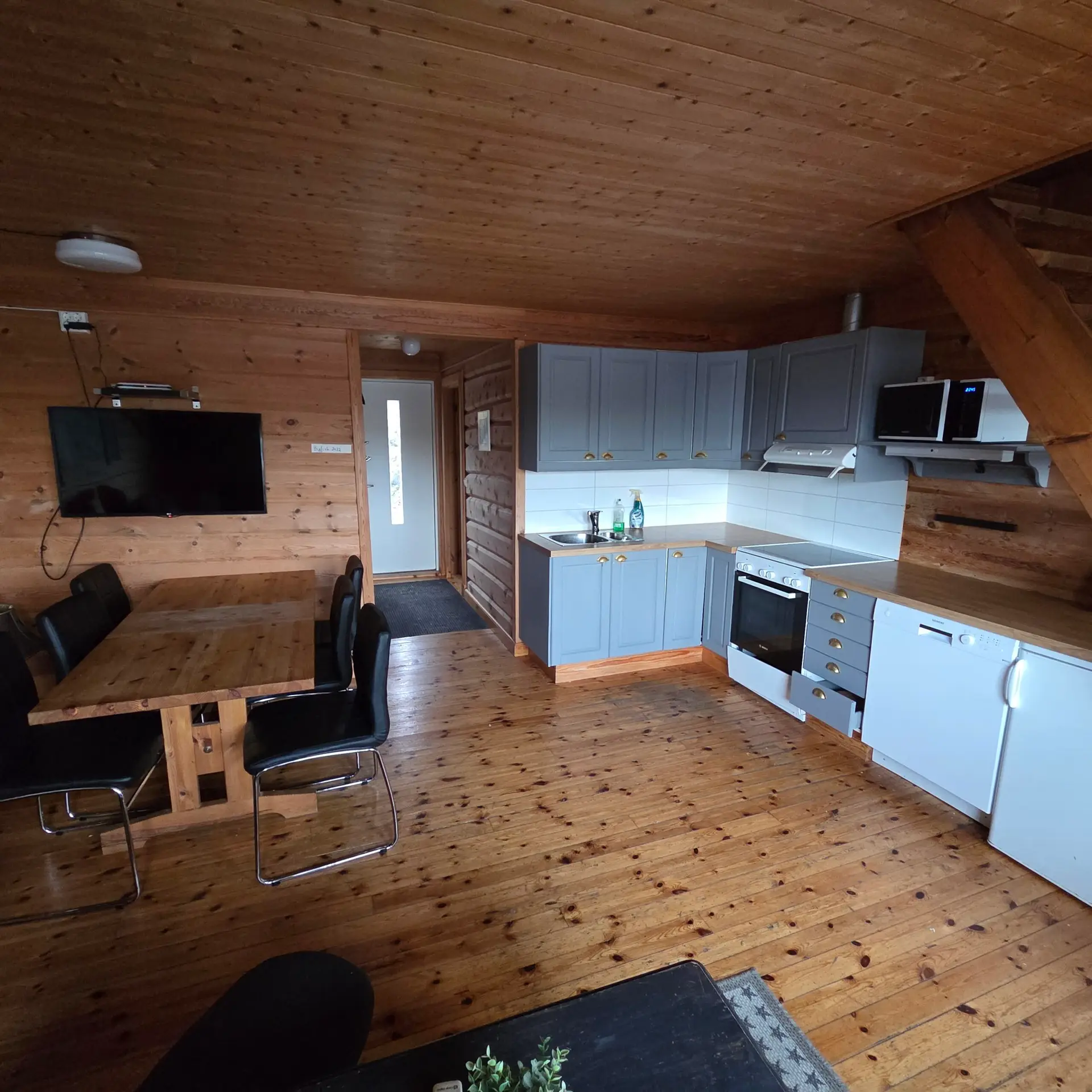 70m2 leilighet over 2 etasjer beregnet for 6 personer, 3 soverom, 6 sengeplasser (5×90 cm senger og 1 x 150 cm seng), 1 bad, bod og fullt utstyrt kjøkken.